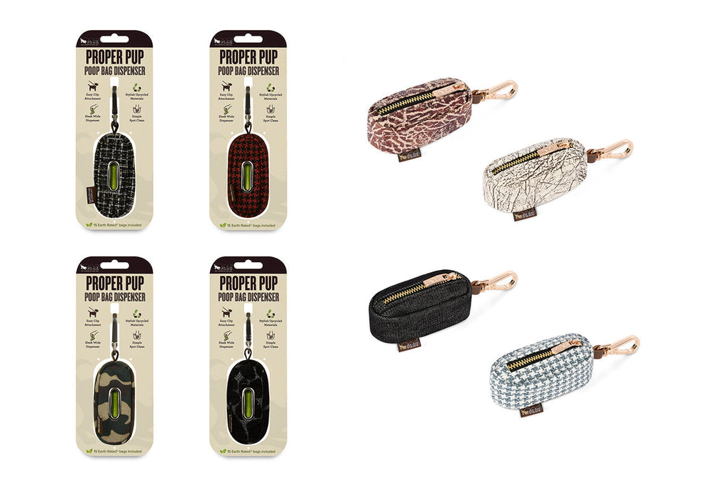 Your New Favorite Dog Waste Bag Holder. When you clip P.L.A.Y.’s stylish Proper Pup dog poop bag holder onto your dog’s leash or belt loop, you’ll never be caught empty-handed when you need to clean up after your furry friend.